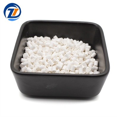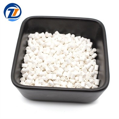 巢式保護(hù)劑(支撐劑)是一種可以完全代替瓷球和開孔瓷球的新型環(huán)保節(jié)能產(chǎn)品,產(chǎn)品主要以高純度氧化鋁和擬薄水鋁石等為原料,以高溫?zé)贫?,其具有高?qiáng)度, 高比表面,高孔隙率的優(yōu)良特性,能有效承重反應(yīng)塔中其他床層的重量。它因其獨(dú)特的繁密網(wǎng)孔結(jié)構(gòu)和更大的比表面積,可大限度的對(duì)流經(jīng)的氣液進(jìn)行細(xì)密的切 割,使冷氫與原料油的接觸和熱交換更加充分,且在進(jìn)入主催化劑床層時(shí)分配更加均勻。巢式保護(hù)劑(支撐劑)產(chǎn)品比瓷球大得多的空隙率,獨(dú)有的圓弧面設(shè)計(jì),使得任意接觸的形式都是點(diǎn)或線提高了有效的容污率進(jìn)一步改善了氣液的水平分布,空隙率提高到80%以上,使氣液流經(jīng)反應(yīng)器的覆蓋 層和支撐層時(shí)流速更緩,從而混合拌勻得更加充分,并有效降低床層的壓降。因此巢式保護(hù)劑(支撐劑)產(chǎn)品有著瓷球無法比擬的優(yōu)點(diǎn),對(duì)整套裝置的運(yùn)轉(zhuǎn),不管從節(jié) 能和運(yùn)行時(shí)間等都具有的優(yōu)勢(shì)。 可根據(jù)用戶要求生產(chǎn)出不同鋁含量