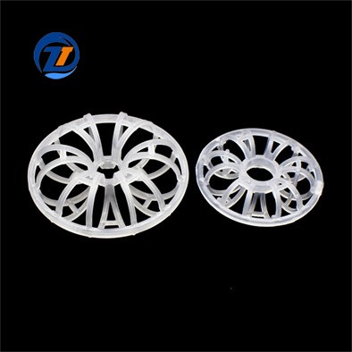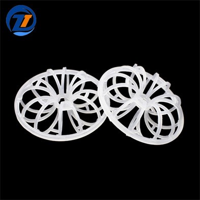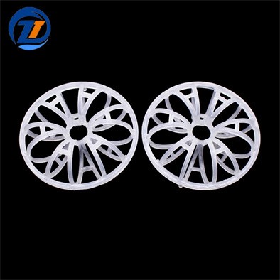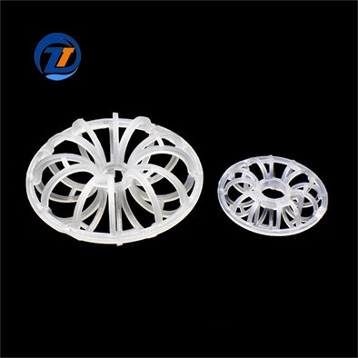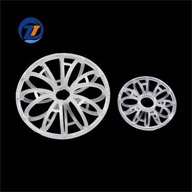 PP花環(huán)填料又稱(chēng)泰勒花環(huán),是由12個(gè)小圓環(huán)按徑向排列而組成的一個(gè)大扁環(huán)體,很類(lèi)似于一個(gè)螺旋形彈簧首尾相接繞成的一個(gè)圓球體。這種填料的主要特點(diǎn)是填料的空隙率大,不易被堵塞,還有通量大、阻力小等優(yōu)點(diǎn),由于這種填料的間隙處能有較高的滯液量,可使塔內(nèi)液體停留時(shí)間較長(zhǎng),從而增加了氣液的接觸時(shí)間,提高了優(yōu)質(zhì)效率。