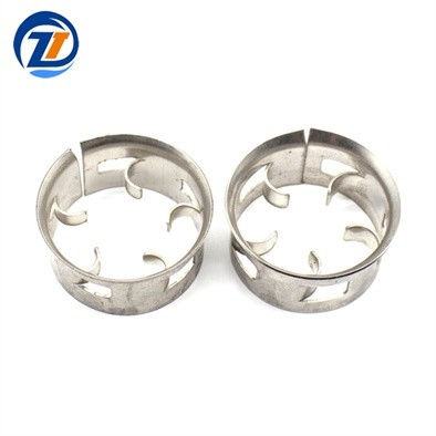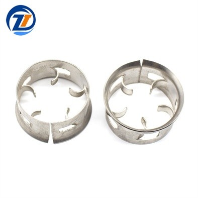 4、提高反應(yīng)效率:金屬階梯環(huán)最大限度使其環(huán)面垂直而非平行,這種設(shè)計(jì)運(yùn)用在傳質(zhì)中優(yōu)勢(shì)更為突出。因?yàn)榉磻?yīng)效率取決于接觸面的大小。平行面的設(shè)計(jì)會(huì)使環(huán)內(nèi)側(cè)面接觸不到液體,從而形成干面。干面在傳質(zhì)中幾乎不起作用,但是金屬階梯環(huán)的垂直設(shè)計(jì)大大降低干面的可能性,從而有效的提高效率。